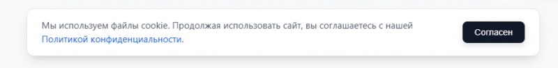 <p>Мы используем файлы cookie. Продолжая использовать сайт, вы соглашаетесь с нашей <a href="/agreement.php" target="_blank">Политикой конфиденциальности</a>.</p>
